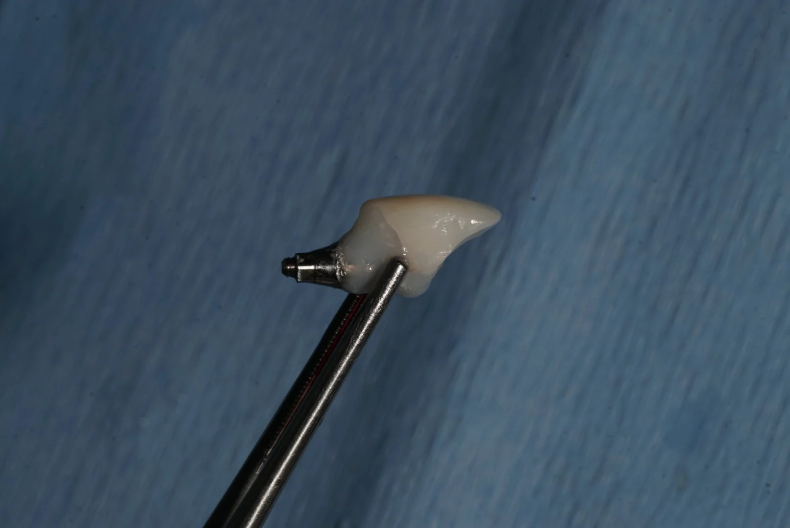 A broken and non-restorable upper front tooth (with an existing zirconia crown) was carefully removed in an atraumatic manner to preserve the surrounding bone and gum tissue.