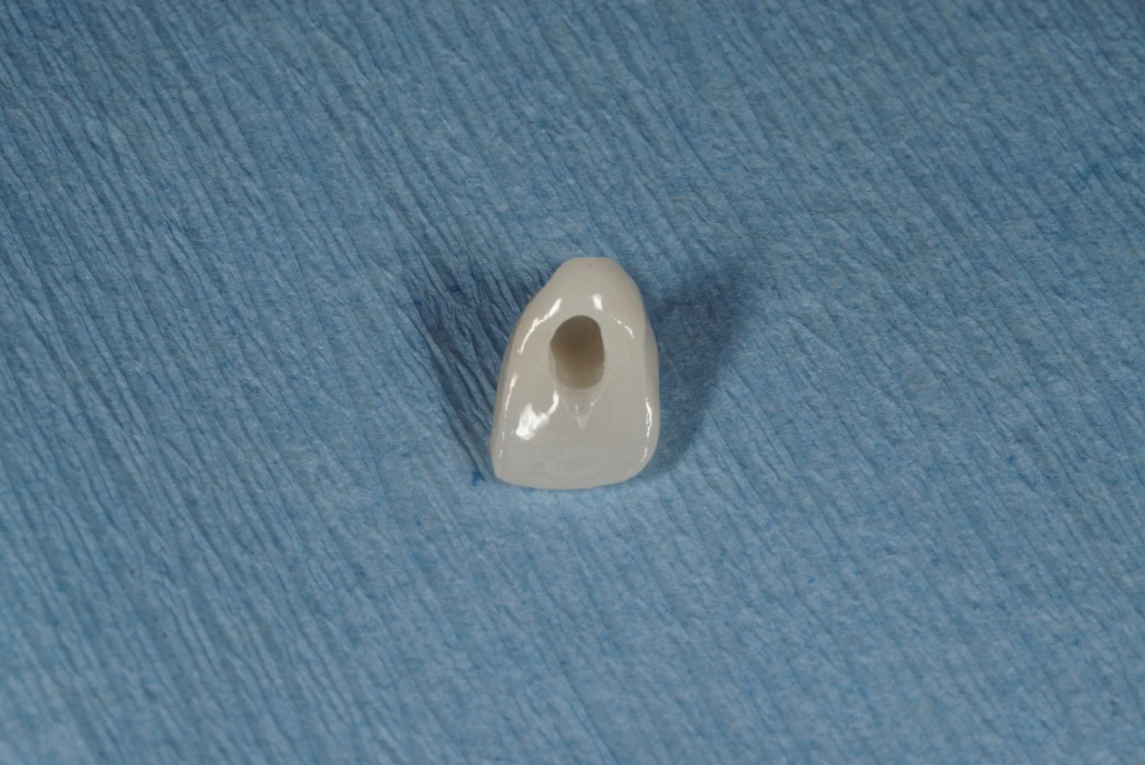 The patient’s original zirconia crown was skillfully adapted and transformed into a temporary implant crown — delivered on the same day as surgery.